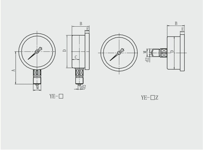 YE-100軸向帶邊膜盒壓力表又稱微壓表。適用于測量無爆炸危險、不結(jié)晶、不凝固,以及對銅和銅合金無腐蝕作用的液體、氣體或蒸汽的低微壓力。