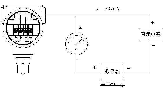 2、變送器加壓力到滿量程,調(diào)節(jié)滿程電阻器,使之輸出電流20mA,