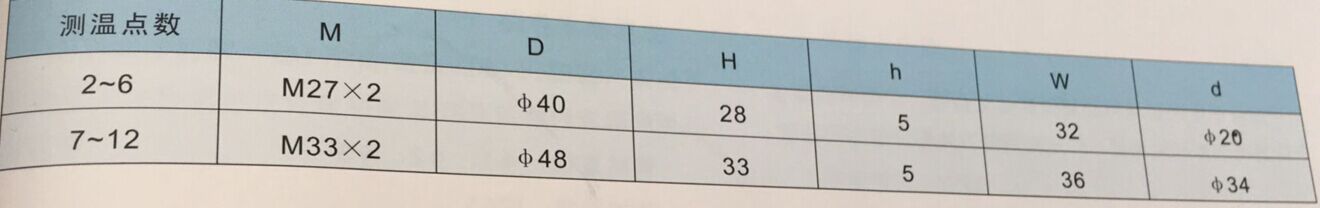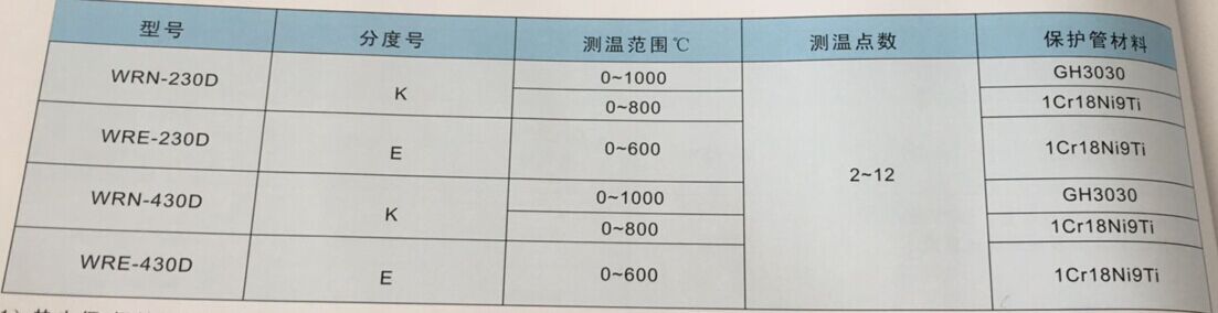 例如:多點(diǎn)熱電偶,K型,3點(diǎn),L級,固定螺紋M27×2,L1=1200,L2=2000,WRN-220D31級L1=1200,L2=1500,L2=2000,螺紋M27×2